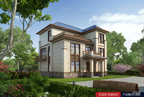 建筑层数:3层 结构形式:砖混结构开间尺寸:12米 进深尺寸:14.9米占地面积:148.6㎡ 建筑面积: 389.2㎡建筑风格:新中式风格 户型布局:6室2厅1厨4卫1书房