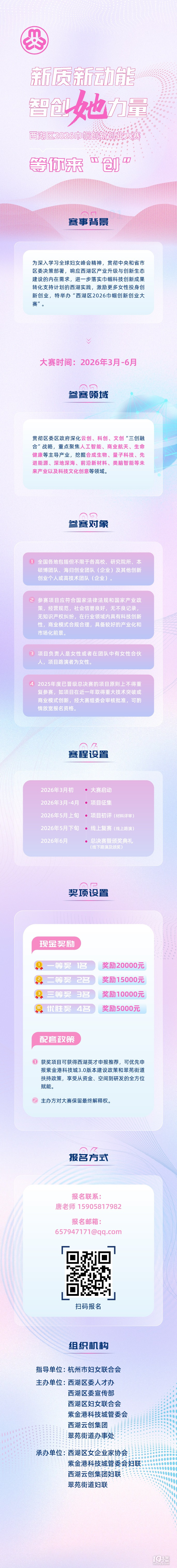 新质新动能,智创她力量——西湖区2026巾帼创新创业大赛来了