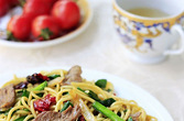 新疆凉面又叫黄面,因其色黄而得名,维吾尔语叫“赛热克阿希”,属夏令风味小吃,面中有一主要原料叫蓬灰,蓬灰来源于戈壁上的“臭蓬蒿”,这是一种野生植物。现在黄面的吃法已经创新了很多种,鸡肉炒黄面,黄面烤肉等等,最有名的就数黄面烤肉,是新疆的一种特色小吃,俗称“民间小吃”它已有几百年的历史。这个黄面烤肉大小烤肉店里都有,特别在夏季特受欢迎,三五好友来上几十个烤肉,一人一份黄面,再来一打乌苏啤酒,那是太好