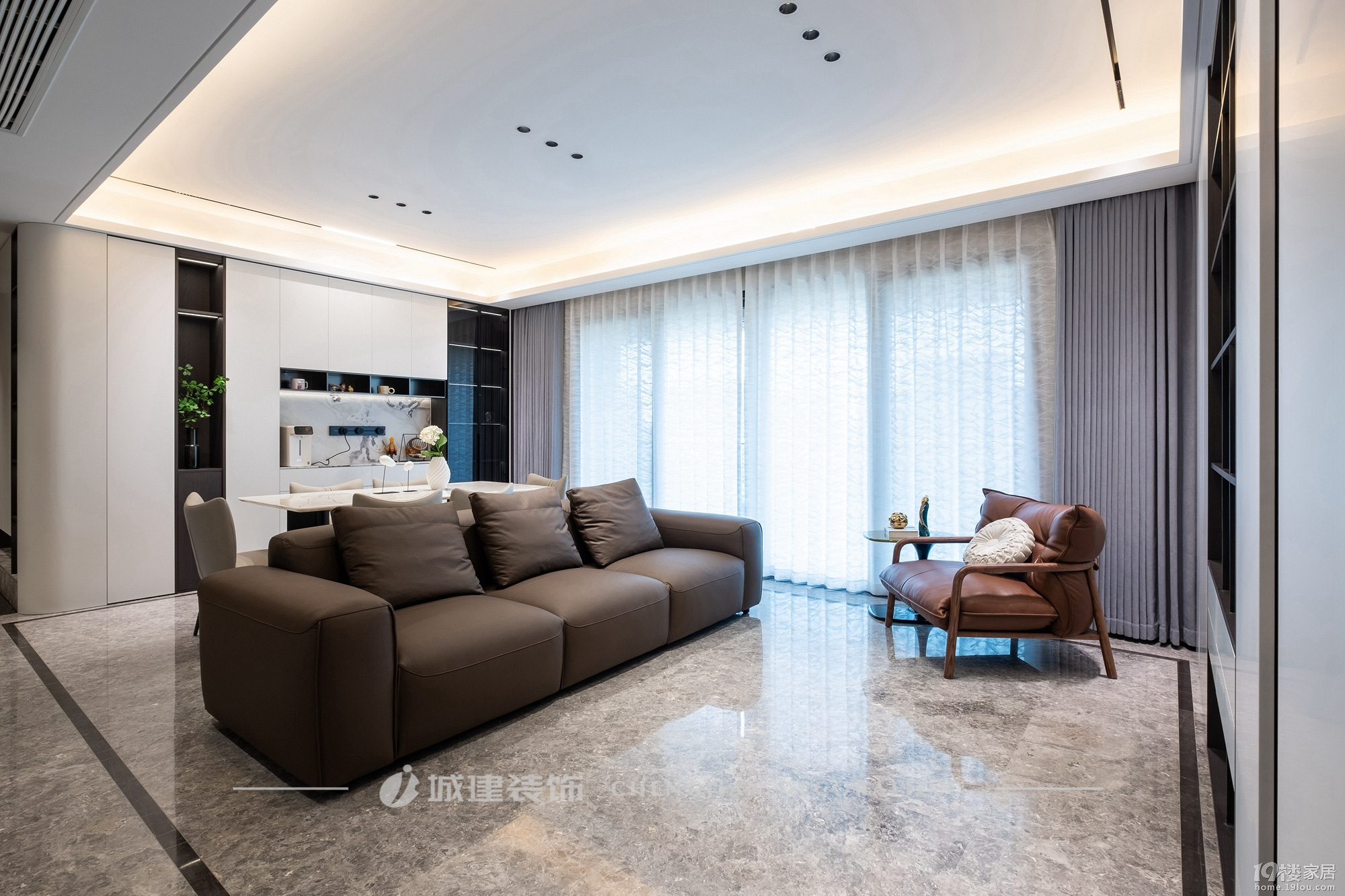 弧形沙发配合大落地窗,开放布局拯救奇葩户型